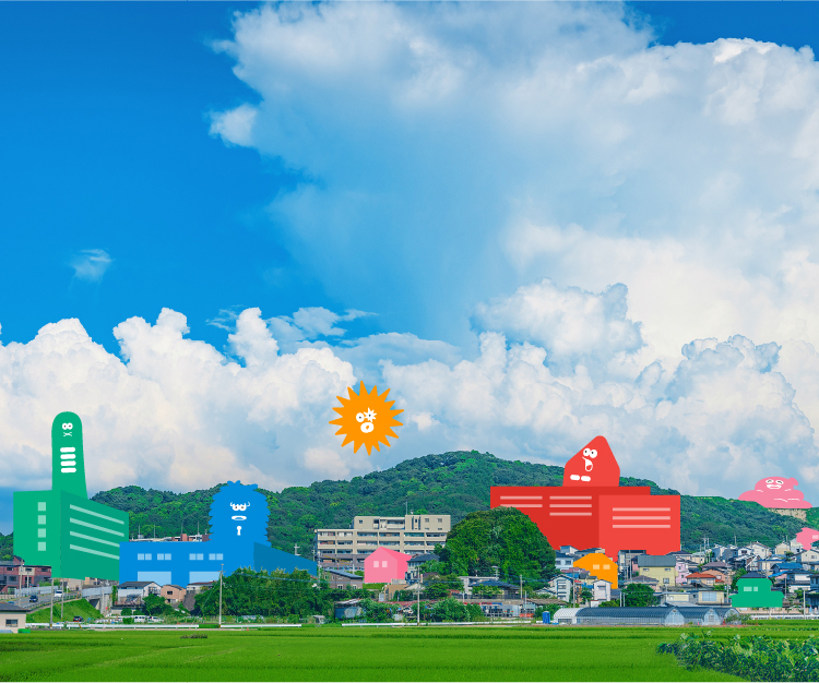 不動産から地域・暮らしを作っていく。すべてが詰まった「地図」がモチーフのロゴマーク。不動産は、用途、使い方によってさまざまな「色」を持っています。そんな彩のある地域をつくっていきたい。そんな想いを込めたマークです。